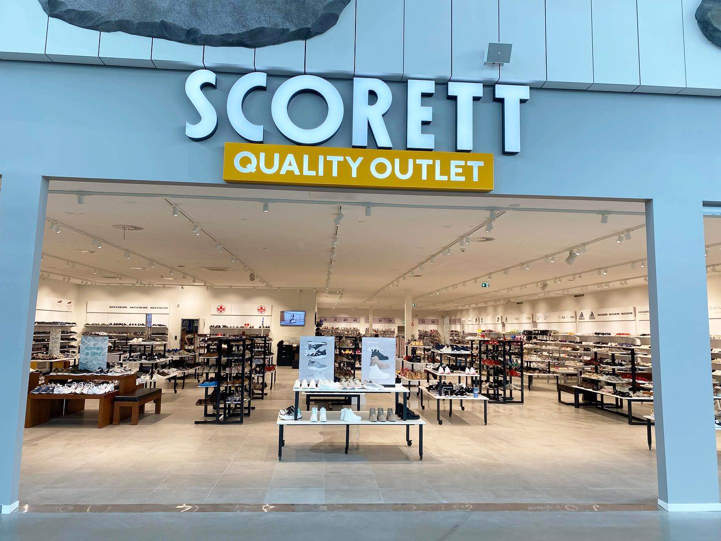 Scorett är en rikstäckande kedja med över 80 butiker. Scorett Outlet erbjuder ett modernt och trendigt sortiment av skor för den kvalitetsmedvetna skoälskaren.